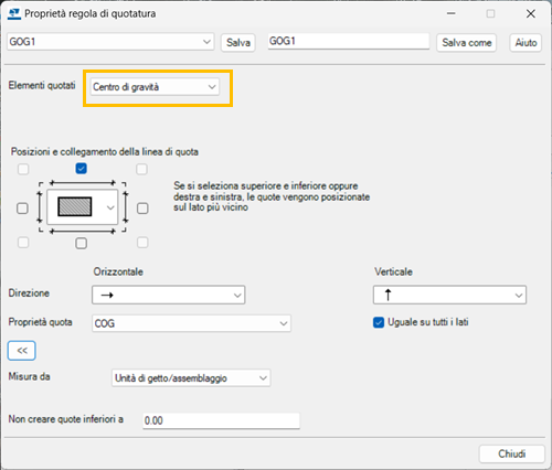 Nuovo tipo di quotatura nella quotatura automatica delle viste - Quote del centro di gravità