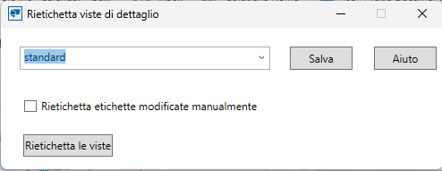 Rietichetta viste sezione e Rietichetta viste di dettaglio sono stati trasformate in applicazioni. In precedenza erano macro, che presentavano alcune limitazioni. È disponibile una nuova finestra di dialogo per le applicazioni, in cui è possibile salvare e caricare le impostazioni e scegliere di rietichettare le etichette della vista modificate manualmente. In alcuni casi, le viste sezione e le viste di dettaglio erano etichettate in modo errato, mentre ora le etichette vista sono corrette.