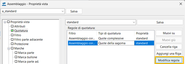 Apertura delle proprietà regola di quotatura molto più veloce
