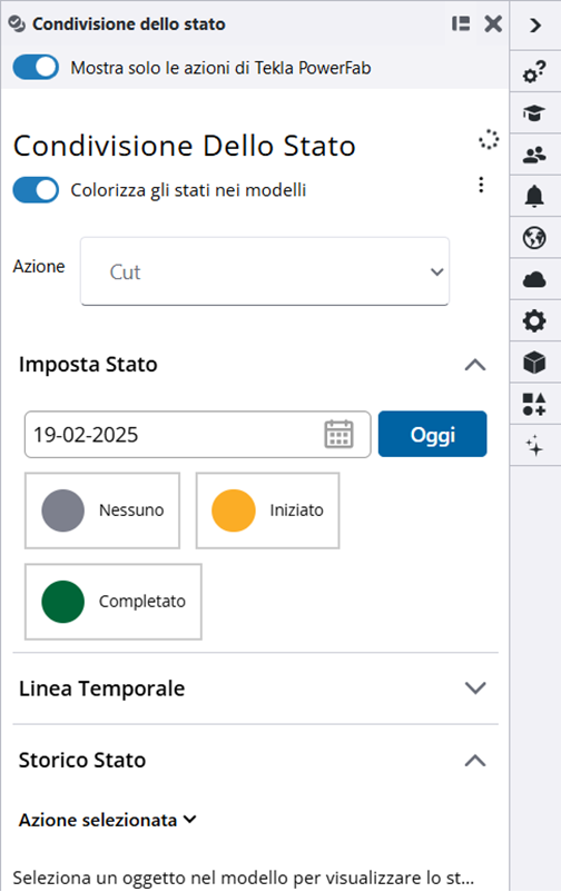 Condivisione dello stato dispone dello switch Mostra solo le azioni di Tekla PowerFab per visualizzare rapidamente lo stato del costruttore.