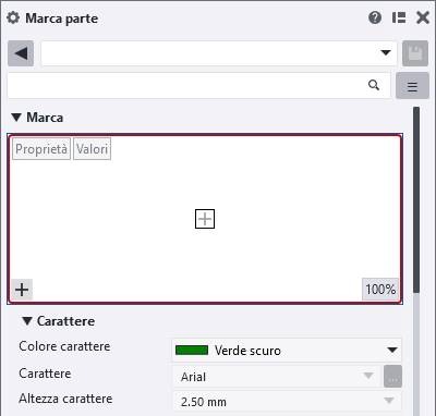 - Se sono state create marche di un solo tipo senza contenuto, il pannello proprietà si apre immediatamente indicando nell'editor visuale che il contenuto non è definito ed è possibile aggiungere il contenuto desiderato.