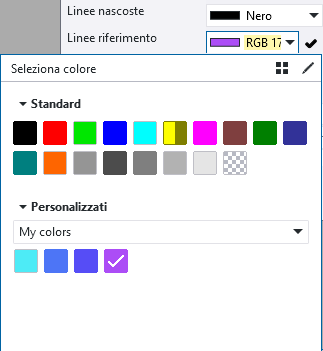 Editor della tavolozza colori in alto.I colori personalizzati non sono disponibili in Editor schema linea.