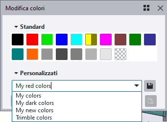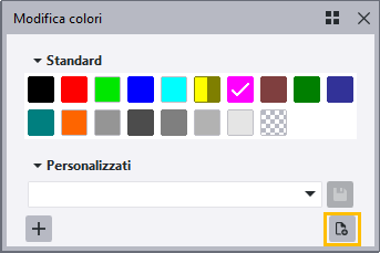 Le tavolozze colori salvate saranno disponibili per tutti i tipi di oggetti di disegno su tutti i livelli di proprietà del disegno, nella stampa e per i template nell'editor template.