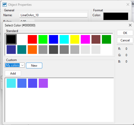 È possibile definire un numero illimitato di colori RGB personalizzati per gli oggetti di disegno. I colori RGB personalizzati sono supportati nell'esportazione dei disegni e nella stampa.