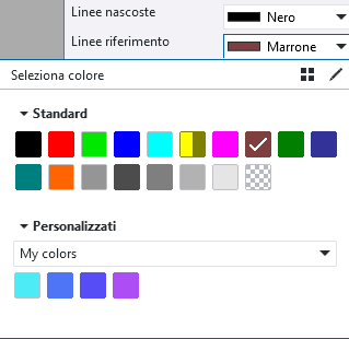 accanto all'impostazione di colore. dove è possibile selezionare i colori dalle tavolozze disponibili. Per accedere alla modalità di modifica del colore personalizzato, cliccare sul pulsante