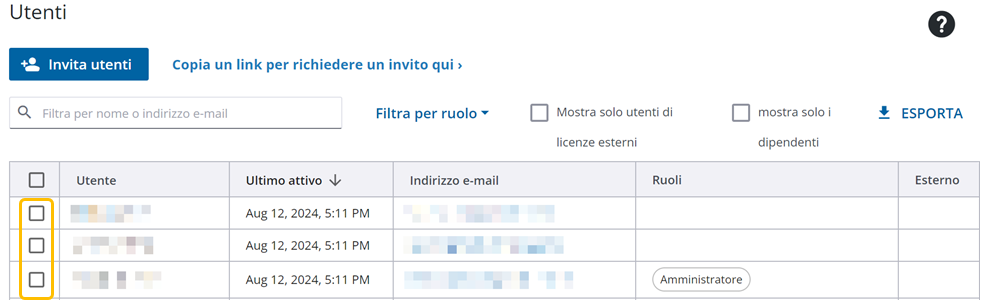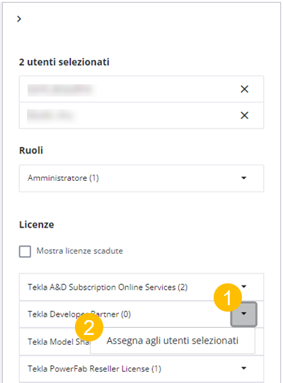 Gli amministratori assegnano le subscription dell'azienda per i prodotti e i servizi Tekla che richiedono una licenza. È possibile assegnare le subscription a più utenti contemporaneamente.