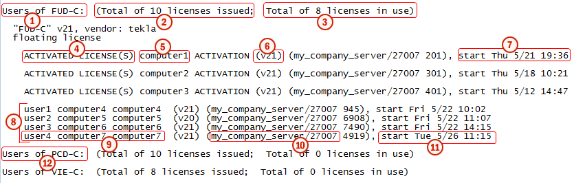 È possibile utilizzare l'applicazione LMTOOLS fornita con il server licenze Tekla per monitorare chi sta attualmente utilizzando le licenze.
