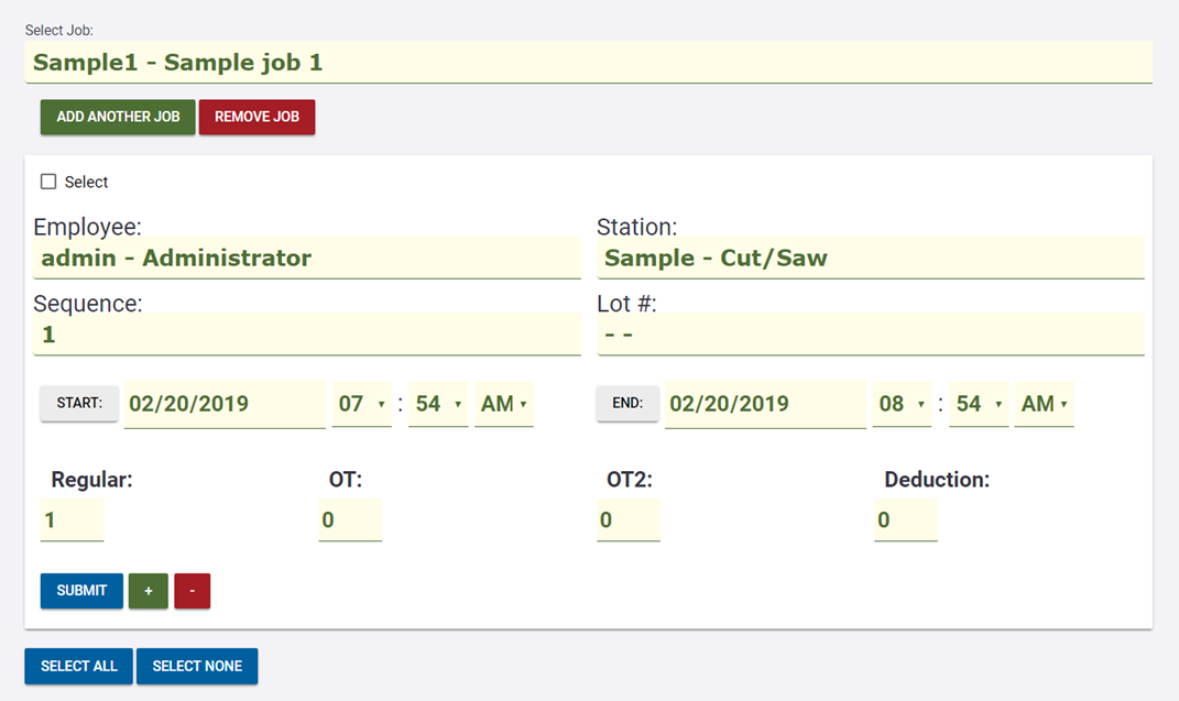 The time tracking records are added for the selected jobs.