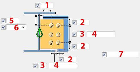 垂直方向のボルト グループの位置の寸法。 寸法は、副梁の中心線を始点として定義されます。 |