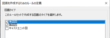 - [図面を作成するためのルールの定義] ダイアログ ボックスで、ルール セットで作成する図面タイプを選択し、[次へ] をクリックします。
