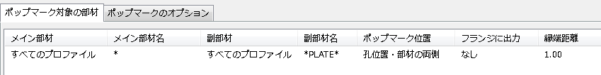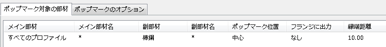 Tekla Structures では、ポップマーク設定が定義されている部材にのみ、ポップマークが作成されます。 ポップマーク設定は、.ncp ファイルに保存できます。このファイルは、Tekla Structures によりデフォルトで現在のモデル フォルダーの下の ..\attributes フォルダーに保存されます。