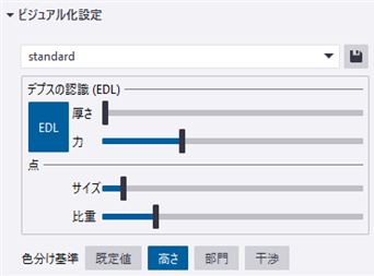 点群をアタッチしており、DirectX レンダリングがアクティブな場合は、点群プロパティとビジュアル化設定を変更できます。