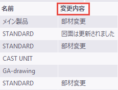 CHANGES 属性は、出図済みの図面が変更された場合や部材が変更された場合などに、図面に変更が発生したことを表示します。この属性は、変更に関する情報を図面レポートに追加するのに使用できます。また、ドキュメント管理 には、この情報を示す列 [変更内容] があります。