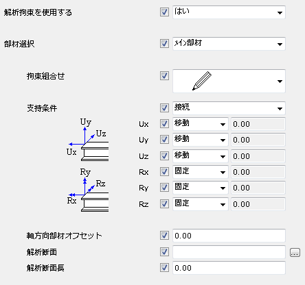 | [軸方向部材オフセット] | 詳細、「解析部材のプロパティ」を参照してください。 |