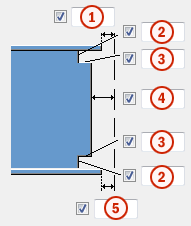 副部材フランジに対して行われるストリップのサイズ。 フランジのカット位置は、クリップ アングルの端部を始点として定義されます。 |