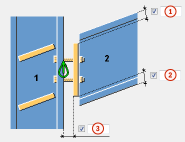 小梁の上面からのエンド プレート上部の縁端距離。 正の値を入力すると、上面の位置が梁の中心に近づくため、プレート サイズが小さくなります。負の値を入力すると、プレート サイズが大きくなります。 |