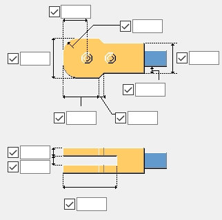水平方向と垂直方向の長孔の寸法、および調整孔または小さなギャップを定義できます。デフォルト値は 0 mm で、丸孔が作成されます。