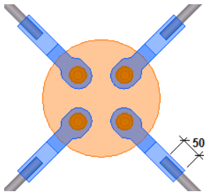 分岐点に開口部を作成するかどうかを選択します。開口部は常に四角形になります。 開口部は、接合ガセットと追加鉄筋ブレースの両方を作成した場合に定義できます。 |