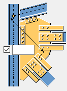 作業点の位置を選択します。デフォルトでは 2 つのメイン部材の交点が使用されます。 Tekla Structures では、コンポーネントの作業点を使用して、図面のチェック寸法と部材マーク寸法が計算されます。 |