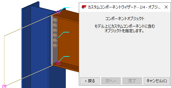 定義されたカスタム コンポーネントはインテリジェントでないため、Tekla Structures はモデル内の変更に合わせて寸法を調整しません。 コンポーネントをモデル内の変更に適応させるには、コンポーネント オブジェクトとモデル オブジェクト間に依存関係を構築できるカスタム コンポーネント エディターで、コンポーネントを編集します。