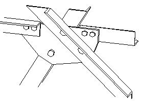 [ブレース ガセット (167)] は、ガセットプレートを使用して、2 本の斜めブレースを 2 本の水平ブレースにボルト留めします。
