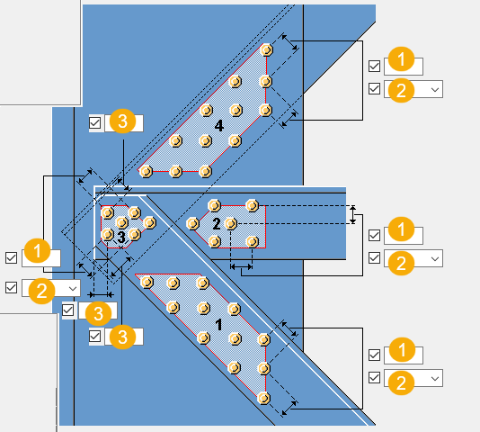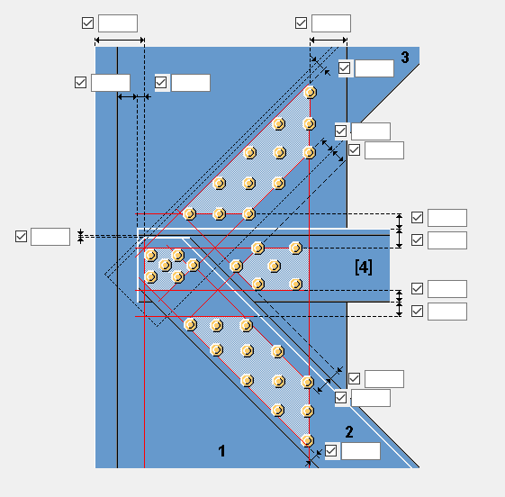 [パラメータ] タブを使用して、ボルトグループの位置を定義する縁端距離を決めます。