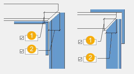 副部材をフィティングするかどうかを選択します。 最後のボルトから副部材の縁端までのフィッティング距離を定義します。 |
