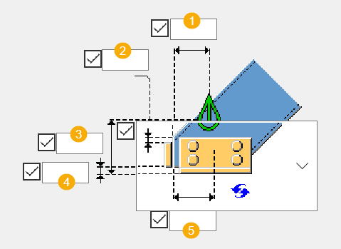 指示した点から垂直方向のカットエッジまでの水平距離。 デフォルトの距離はゼロです。 |