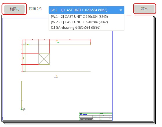 [範囲の選択] で範囲を選択すると、[図面全体の表示] ボタンが表示されます。このボタンをクリックすると、図面全体をプレビューに再度表示することができます。 |
