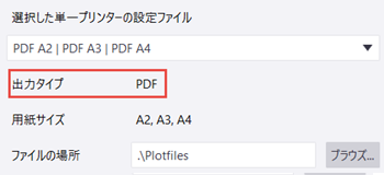 PDF ファイルまたはプロット ファイルの場所を入力するか、[ブラウズ...] を使用してフォルダーをブラウズします。 モデル フォルダーの下の \Plotfiles フォルダーがデフォルト値です。 このオプションは、[PDFファイル] または [プロットファイル] を選択した場合にのみ利用できます。 |