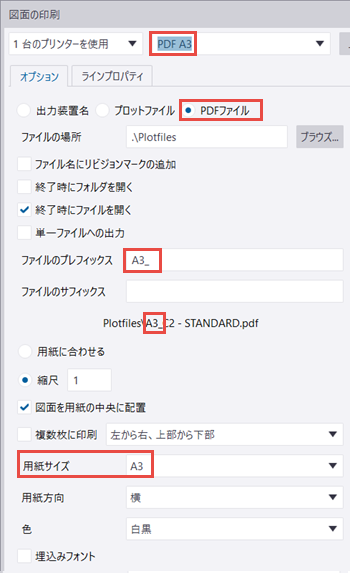 - PDF A3:用紙サイズを A3、ファイルの頭マークを A3_ に設定