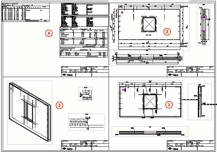 複数枚のシートに印刷し、シートの印刷方向を指定します。これは、ある図面のファイルに複数の図面が含まれている場合に特に便利です。左から右、上部から下部 または 下部から上部、右から左 から出力するために選択します。 複数枚に印刷 を使用するときは、必ず特定の 縮尺 を設定します。 プレビューには、図面がどのように用紙に分割されるかが表示されます。 |