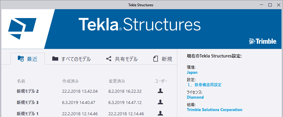 - 従来の Tekla Structures 起動画面を起動する