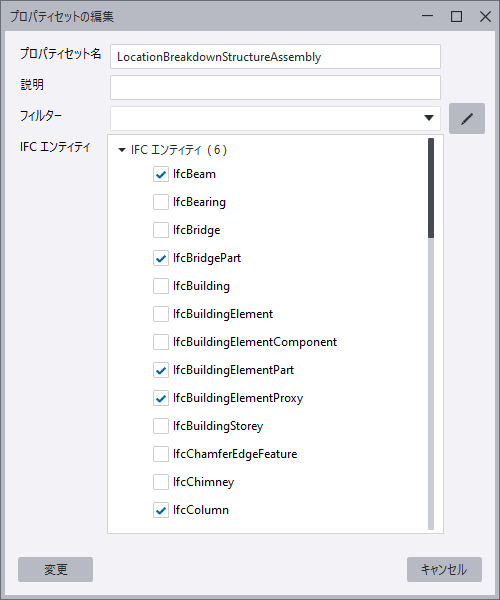 IFC エクスポートのプロパティ セットの変更