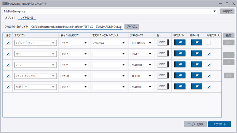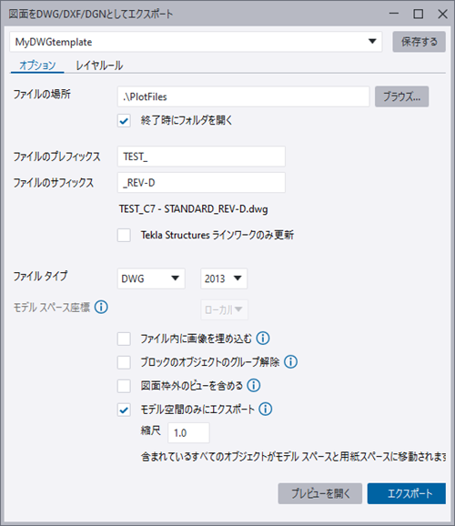 図面 DWG/DXF/DGN のエクスポートでは、以下の操作を実行できます。