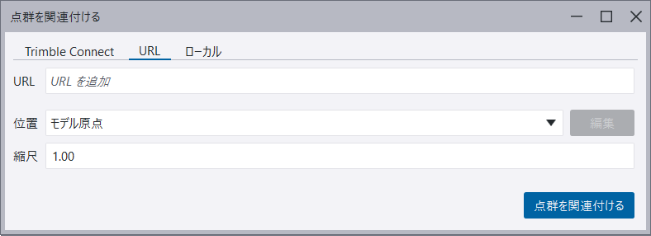 • インターネットから点群を関連付ける: [点群を関連付ける] ダイアログの [URL] タブで、点群の URL アドレスを入力します。