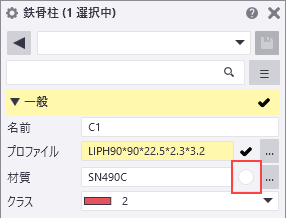 プロパティ パネルで部材プロパティを開くには、次のようにします。