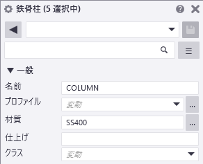 モデルまたは図面で複数のモデルまたは図面オブジェクトを選択し、それらのプロパティを一度に変更できます。鉄骨柱や図面スケッチ オブジェクトなど、同じオブジェクト タイプを選択することも、異なるオブジェクト タイプにすることもできますが、プロパティ パネルには、選択したすべてのオブジェクトに共通するプロパティのみが表示されます。