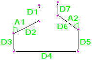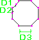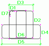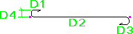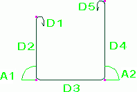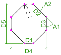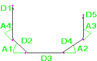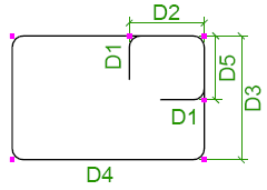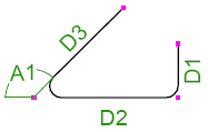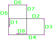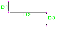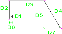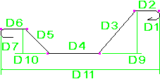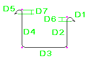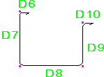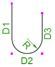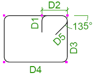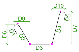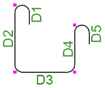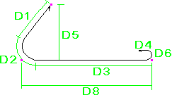 鉄筋の曲げ寸法は、脚部の寸法 (D1、D2 など) が鉄筋の外側端部または端部延長に従うように計算されます。全長は、鉄筋の中心線に従って計算されます。