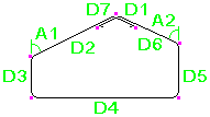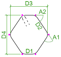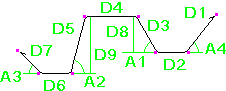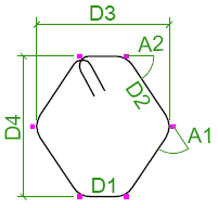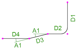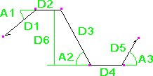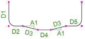 この表の曲げタイプ識別子は、Tekla Structures で内部的にハードコードされたものです。鉄筋の脚の寸法 (D1、D2 など) と曲げ角度 (A1、A2 など) は、Tekla Structures の内部寸法と角度です。Tekla Structures の内部曲げタイプを国固有の曲げタイプやプロジェクト固有の曲げタイプに対応付けたり、Tekla Structures の内部寸法や角度を特定のテンプレート属性に対応付けることもできます。これは、rebar_schedule_config.inpファイルで行うことができます。