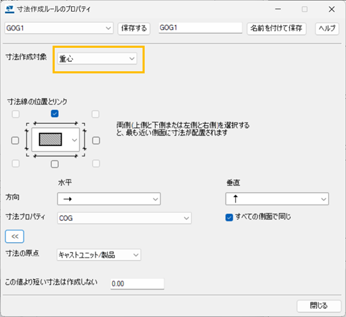 自動ビュー寸法の新しい寸法タイプ - 重心寸法