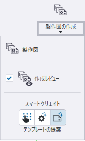 新しいスイッチである [テンプレートの提案] スイッチが追加された、新しくなった [製作図の作成] リボン メニューは、デフォルトで有効になっています。
