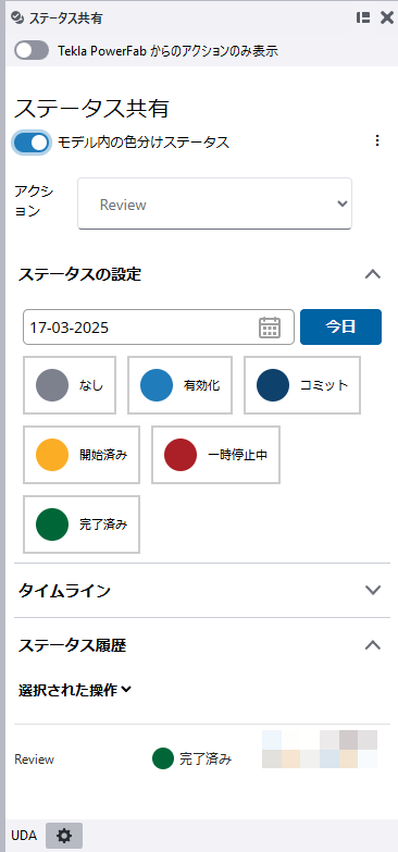 まったく新しくなった [ステータス共有] ツールが Tekla Structures と Trimble Connect に統合され、ダウンロードやインストールなしでステータスを共有可能になりました。[ステータス共有] ツールを使用すると、モデル オブジェクトと製品のステータスを設定、表示、変更することができます。オブジェクトのステータスは、たとえば製作状況や架設状況などです。Tekla Structures および Tekla PowerFab 間で [ステータス共有] を使用している場合、Tekla Structures でアクションをフィルタリングして、Tekla PowerFab のアクションのみを表示できます。