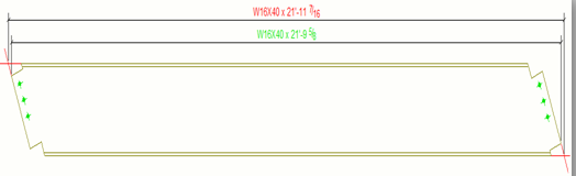 以下の例は、上側の寸法 (赤色) ではこの詳細設定を TRUE に設定し、下側の寸法 (緑色) では FALSE に設定した場合を示します。