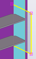 それぞれのコンポーネント オブジェクトのハンドルを平面に個別に拘束する代わりに、吸着補助平面と吸着補助線を使用できます。吸着補助平面 (または吸着補助線) 上にあるオブジェクトは、平面 (または線) とともに移動します。たとえば、8 つの距離変数を作成するのではなく、1 つの距離変数を作成するだけで済みます。