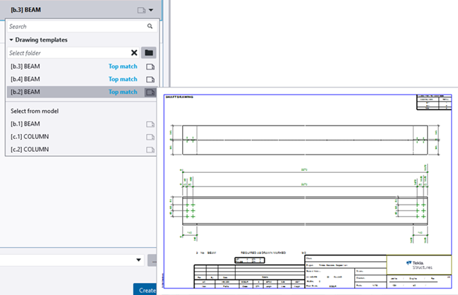 You can efficiently manage the creation process, and select the best matching drawing template or saved settings automatically detected in the current model, or alternatively, select settings for every individual model object.