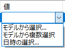 または、既存のオブジェクトの現在の値を使用するには、[モデルから選択...] をクリックしてモデルから必要なオブジェクトを選択します。複数のオブジェクトの値を使用するには、[モデルから複数選択] をクリックし、モデルからオブジェクトを選択して、マウスの中ボタンをクリックします。日付値の場合、[日時の選択...] オプションも使用できます。