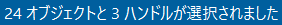 多くの Tekla Structures コマンドでは、オブジェクトを選択する必要があります。単体で選択するか、範囲で選択することができます。Tekla Structures によって、選択したオブジェクトがハイライトされます。ステータス バーの右下隅に、選択されたオブジェクトおよびハンドルの数が表示されます。次に例を示します。