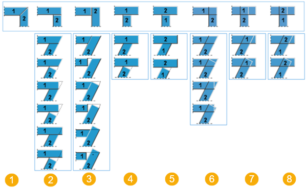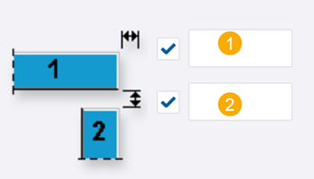 リスト (1) で選択したタイプによって、リスト (2) で使用できるフィッティング方法が定義されます。フィッティング タイプ オプションについては、下の図を参照してください。