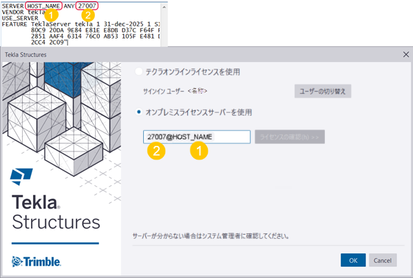 Tekla Structures オンプレミス ライセンス サーバーへの接続